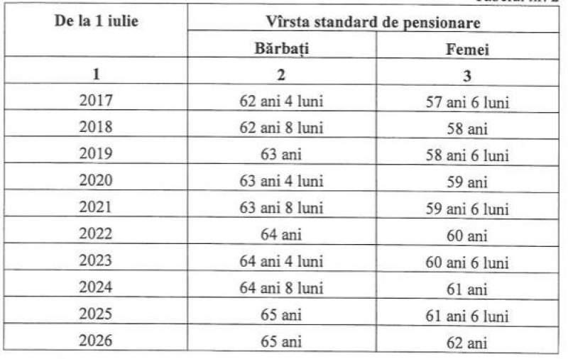 vizitati articolul complet aici : https://stirimondene.fanatik.ro/cand-iesi-la-pensie-in-functie-de-varsta-legea-pensiilor-si-tabelul-pe-varste-18356766 Autorii documentului propun și o nouă formulă pentru calcularea pensiilor, care în conformitate cu această formulă, cuantumul pensiei va depinde de contribuția pensionarului la unimedia precizează că, în prezent, vârsta de pensionare pentru bărbaţi constituie 62 de ani. Atingerea acestei varste se realizeaza prin cresterea varstelor standard de pensionare, a stagiului complet de cotizare, a stagiului minim de cotizare conform esalonarii prevazute in anexa nr. Extinderea posibilității de pensionare a femeilor în mod anticipat cu.