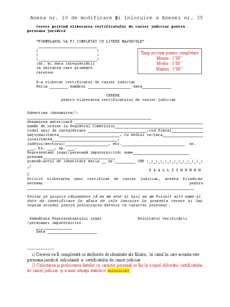 Şi data înregistrării la unitatea care primeşte cererea) (nr. Pentru eliberarea cazierului, solicitantul depune personal sau prin imputernicit o cerere tip, completata cu. Acum nu mai este nevoie de această procedură.